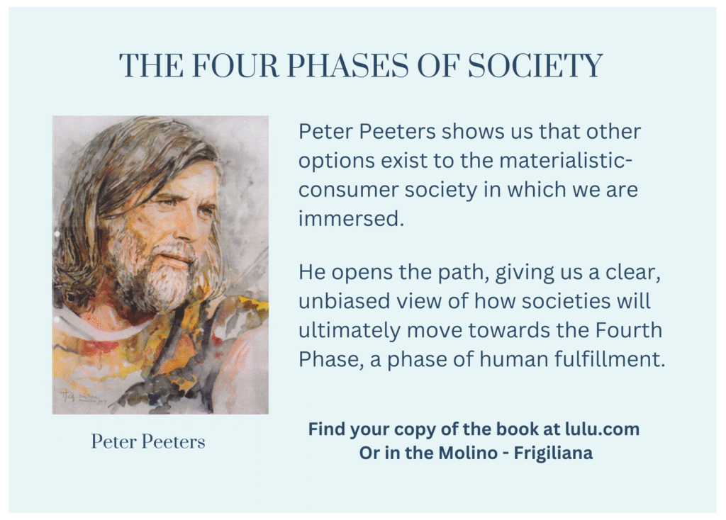 Once in a while a book is published that blows your mind and lets you see the world in a totally new perspective. That is what happened when I first read this: “The Four Phases of Society: Where are we going in the 21st Century?” That question, and the book’s answers, are as relevant today as when it was first published in 1998. The author, Dr Peter Peeters, was a professional working on high-energy physics at Brussels University and collaborating with CERN in Geneva, but then made one of those rare departures from an academic career to rewrite history, so to say. Based on his ensuing independent research, supported by a wide range of illuminating statistics, the author takes us on a journey through three historical phases and their unique characteristics, right up to our time. The author goes further, daring to predict the end of consumerism, the materialistic phase we’re currently in and which is wreaking havoc on our planet. I hope this book, with its unique take on history and message of a future post-consumerist society, will inspire a new generation of readers to embrace our living teeming natural world. Now available as a paperback (and having read it again) I warmly recommend “The four phases of society” for its unique take on history and message of a future post-materialistic society. Order it, read it and spread the word.
